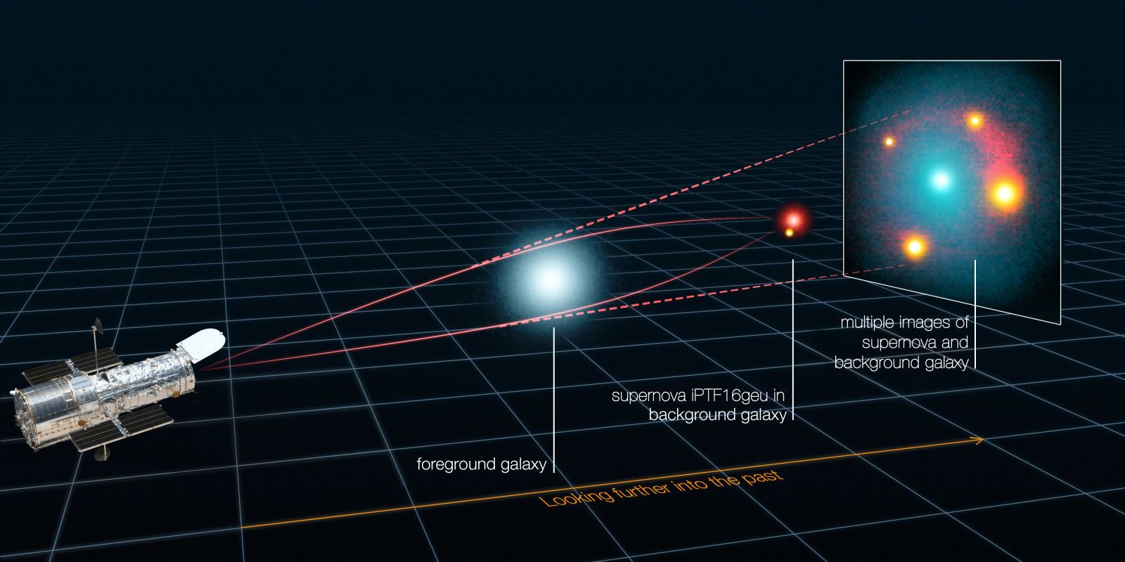 Gravity bent the light from this supernova around a galaxy, making it show up 4 times in a single telescope picture and 5,000% larger that it should be. It's the first time astronomers have ever seen such a rare sight.